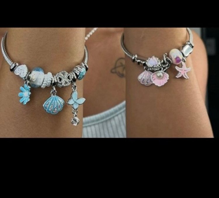 دستبد پاندورا با طراحی خاص دریا و شکوفه های آبی